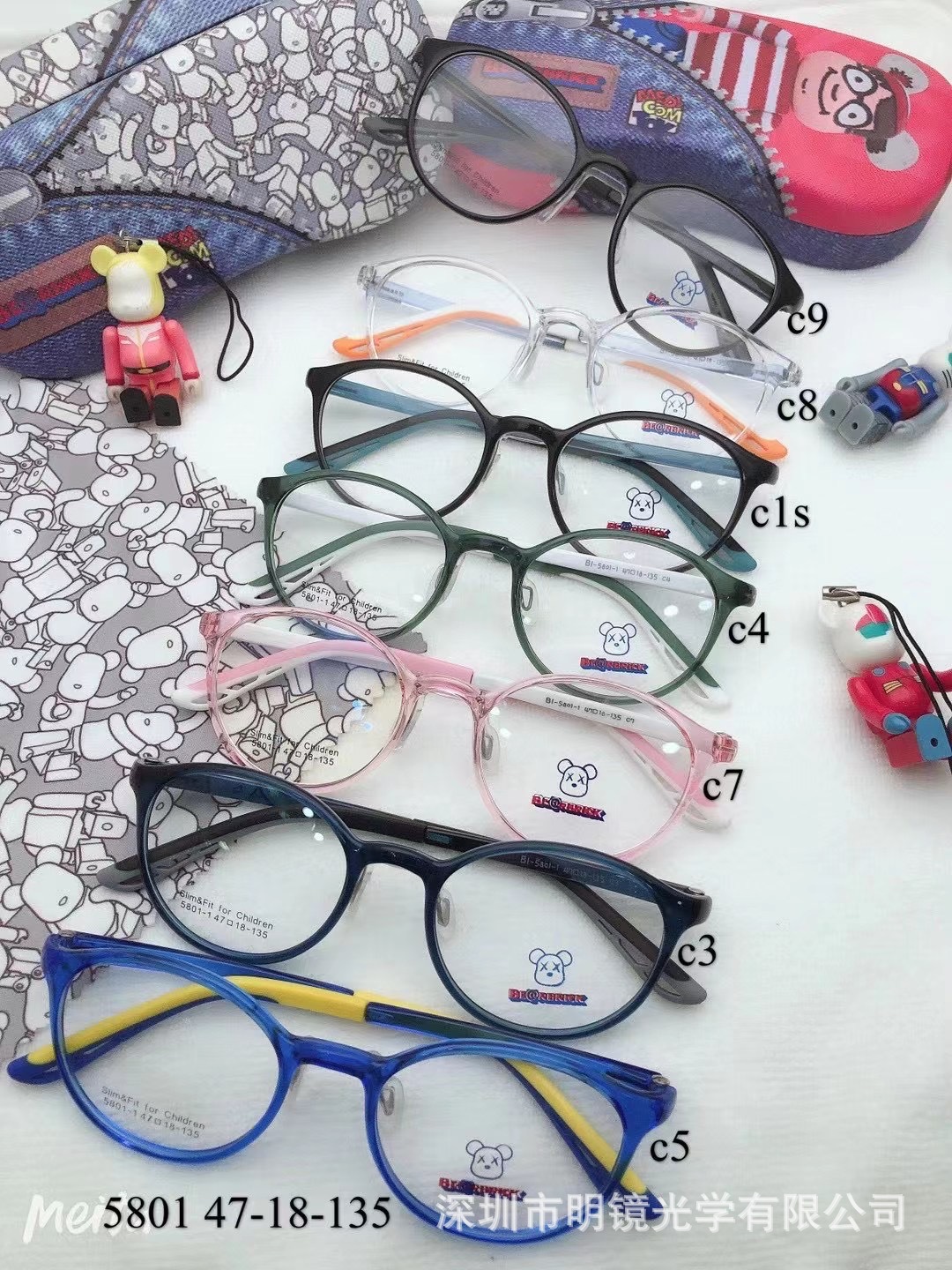 爬地熊儿童镜框以“萌系设计”圈粉无数,镜框颜色以马卡龙粉、海洋蓝、活力黄为主,搭配卡通熊图案或星星元素,完全戳中孩子的审美点16。镜架采用 TR90材质,重量仅约10-15克,轻盈柔软且耐摔,孩子蹦跳时不易变形或压伤鼻梁912。部分型号(如TP3566、PE237)还支持 X-FLEX镜腿技术,可180°弯曲,适配不同头围,尤其适合活泼好动的娃912。